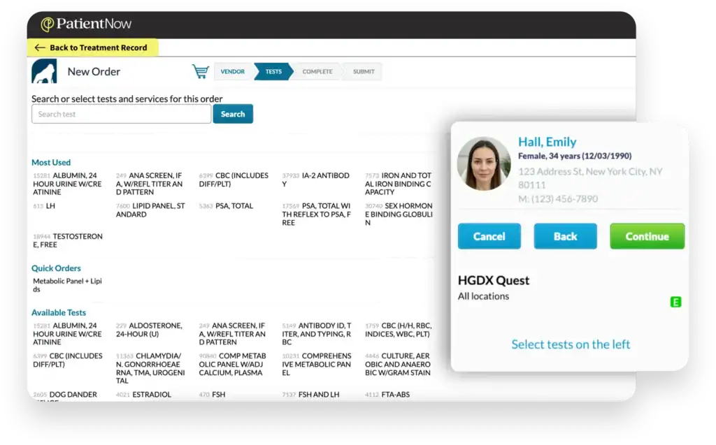 Aesthetic medical clinic software from PatientNow provides forward-thinking solutions so you can effectively integrate your lab work using our advanced platform. Access a complete overview of lab work and test requisitions for improved diagnostics and patient treatment plans. With streamlined workflows and efficient processes, you can provide patients with elevated care and premium services.
