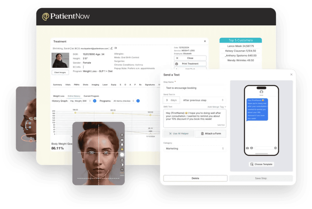 That’s why our aesthetic practice management software is built specifically for this setting. PatientNow helps IV therapy providers manage their schedules with automated booking, follow-ups, and patient communication, reducing manual work while keeping appointments steady. From capturing leads and online booking to charting, treatment tracking, and memberships, our platform supports the entire patient journey to improve retention and long-term value.