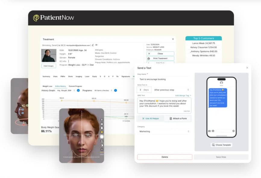 At PatientNow, we work closely with aesthetic practices across injectables, weight loss, and wellness, and we understand how challenging it can be to balance patient care with day-to-day operations. Backed by 20+ years focused only on aesthetics, our insights come from real customer feedback, product experience, and market trends. Unlike general healthcare or salon-based tools, PatientNow brings clinical documentation, marketing, photos, payments, and operations into one system, replacing 4–6 separate platforms.