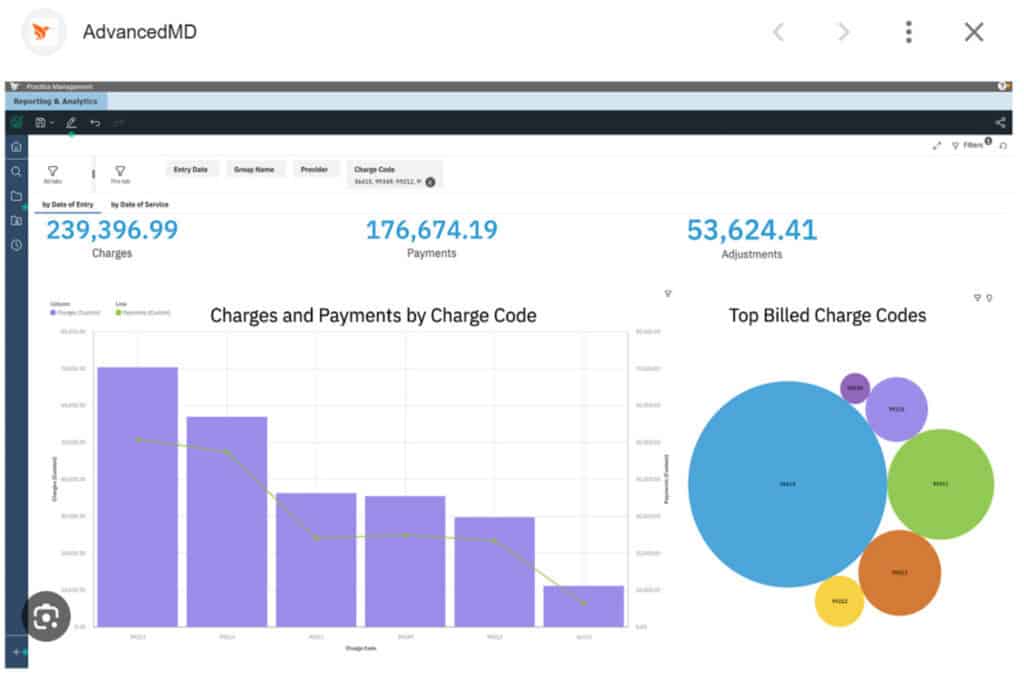 • Reporting: Customizable dashboards and financial reporting for practice performance.