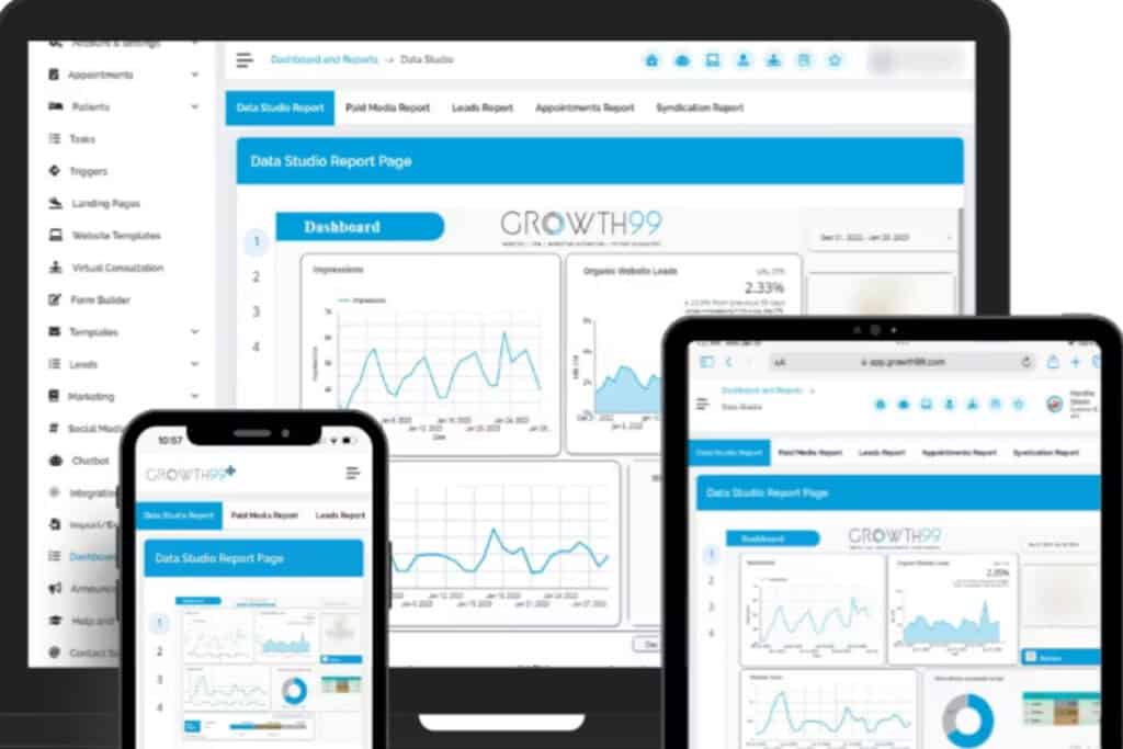 Growth99 is a digital marketing and CRM platform built for medical aesthetics and wellness practices. It focuses on the front end of the patient journey: website development, SEO, paid advertising, reputation management, and CRM.