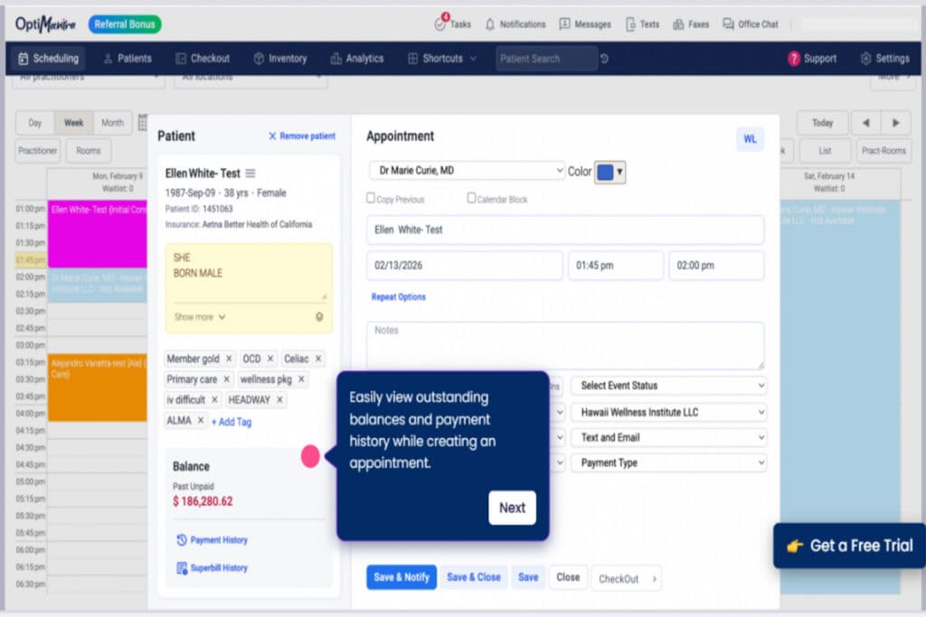 OptiMantra is a cloud-based practice management platform that targets holistic health, wellness, and integrative medicine clinics. It combines an EMR, CRM, online booking, intake forms, and telehealth in a single environment.