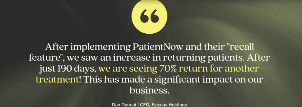 | 1 | PatientNow | Scheduling-aware automation across CRM, EMR, payments, and marketing | End-to-end wellness practices |