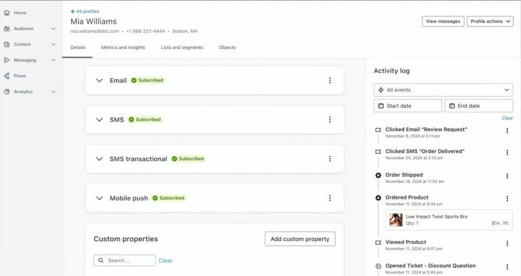 | 11 | Klaviyo | Email and SMS automation | Promotional messaging |