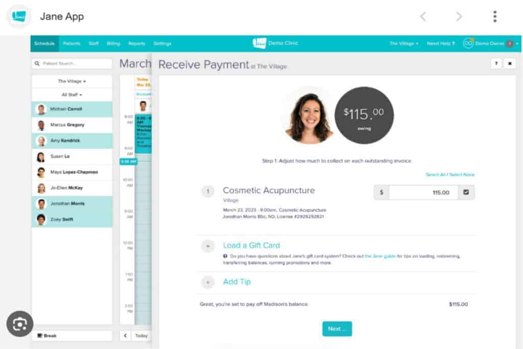 | 6 | Jane App | Scheduling, charting, online booking | Small-to-mid clinics & wellness |