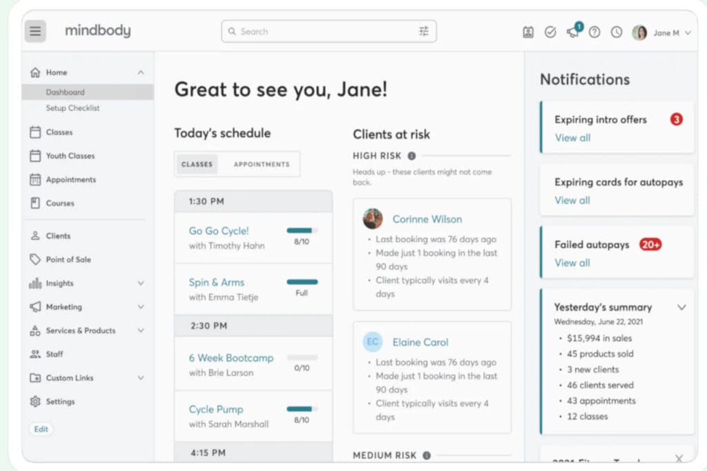 Mindbody is one of the most recognized names in the wellness software space. It’s built primarily for fitness studios, yoga centers, and wellness businesses. The platform’s marketplace and class-based scheduling infrastructure are well-established.