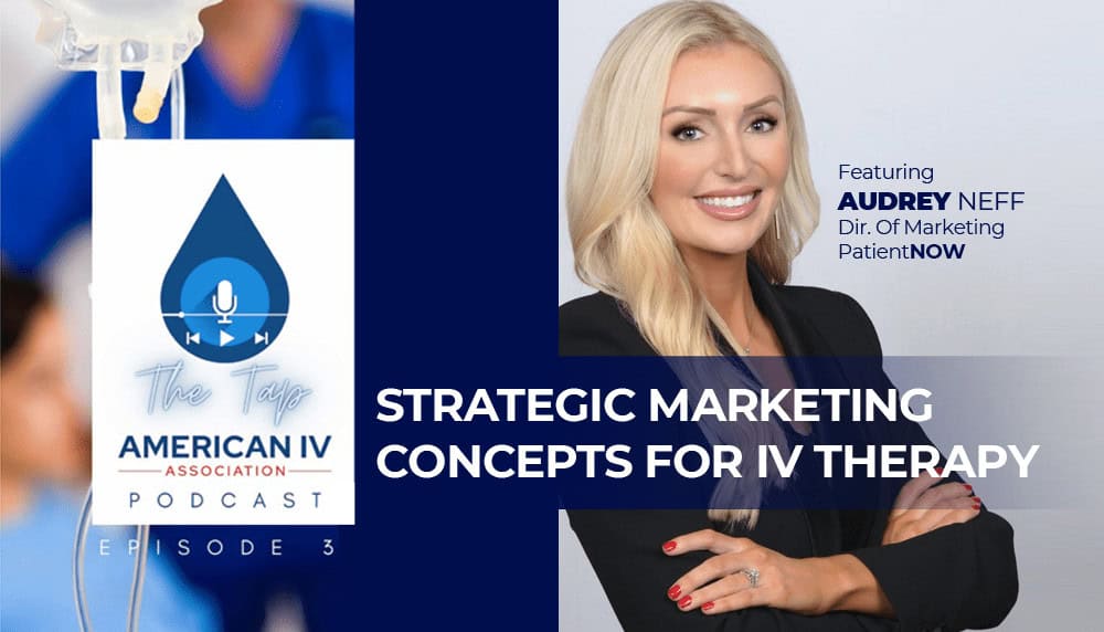 In this episode, we invite Audrey Neff to share her expertise and experience with our audience on how to strategically market to your patients in a variety of ways in today’s technology driven world. She focuses in on the power of attaining patient reviews, converting online traffic into booked consults, click to brick marketing, as well as shares many other pearls of marketing wisdom that she’s gained as she’s now become one of the most sought after marketing minds in both the Medical Aesthetic and IV Therapy industries.